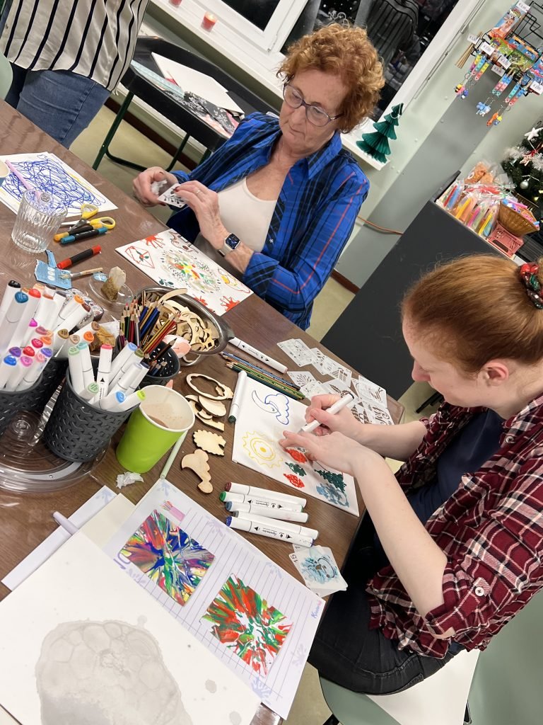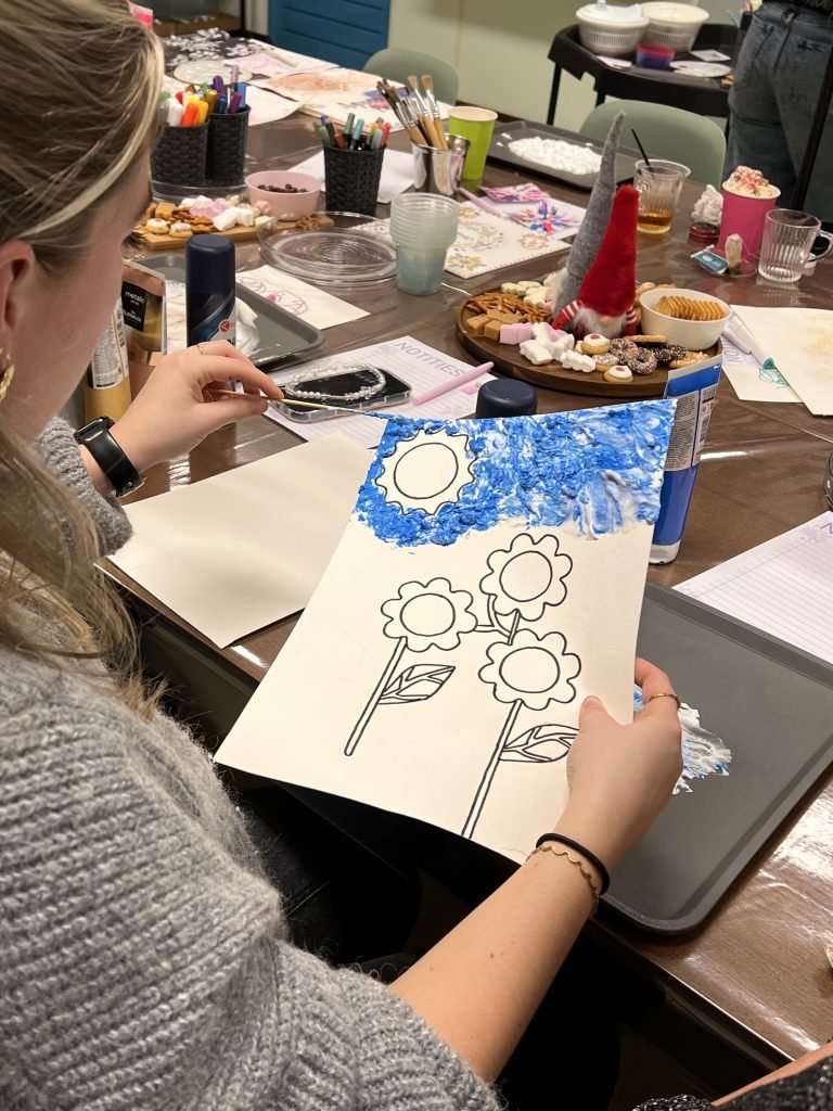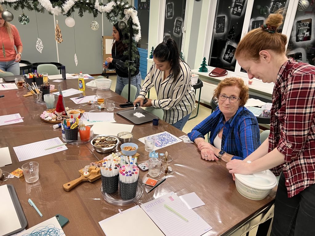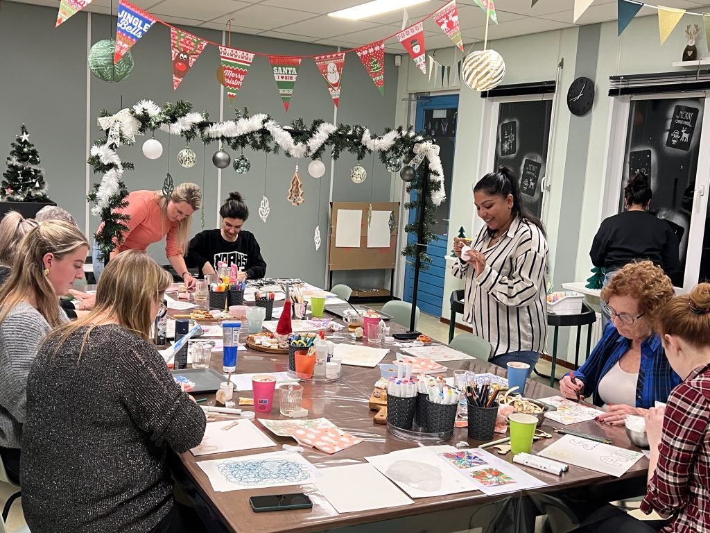 Tussen twinkelende lichtjes, warme chocolademelk en zachte kerstmuziek nemen we de tijd om creatief te zijn — zónder regels, zónder moeten. Alleen maar plezier en ontspanning.